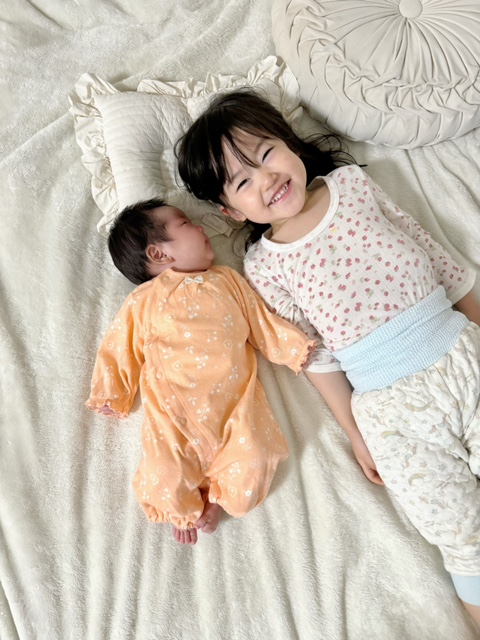喜んでくれましたね。長女はママのお腹に赤ちゃんがいる時はどうしても甘えてしまって。ママを取られてしまうと思っていたようです。でも生まれたらとても面倒をみるので驚きました。すっかりお姉ちゃんの表情です。