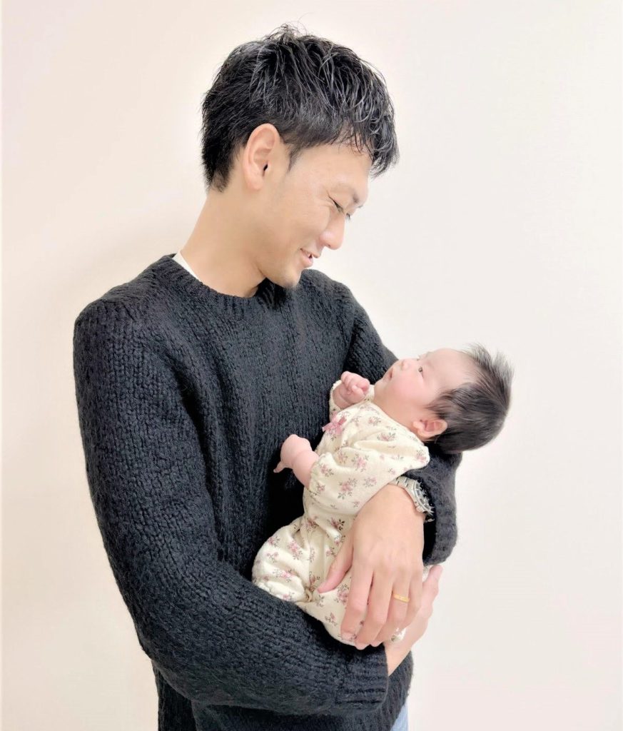1月に誕生した愛真(えま)ちゃんを抱いて