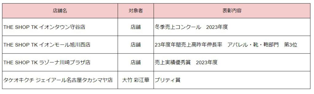ザ ショップ ティーケー イオンタウン守谷店「冬季売上コンクール 第1位 2023年度」