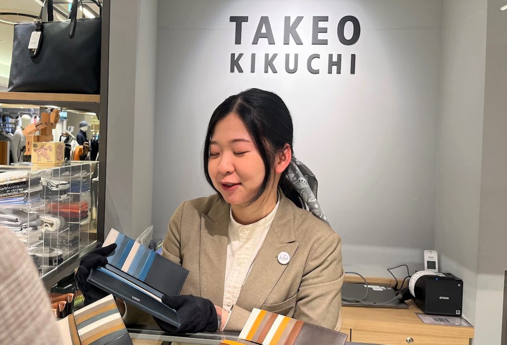 タケオキクチというメンズブランドで女性の自分だからこそ出来ることを常に意識しています。自分にしか出来ないサービスを心がけています。