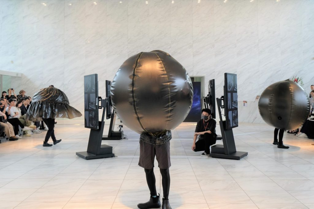 【トヨタ車体】KIMOCHI BOOSTER  着ている人の感情を反映し色と体格が変わるウエアKIMOCHI BOOSTER。自動車部品の工場から出る端材と最先端テクノロジーを組み合わせ、未来の様々なシーンに応じて変化し、人を感情から守ってくれる存在。