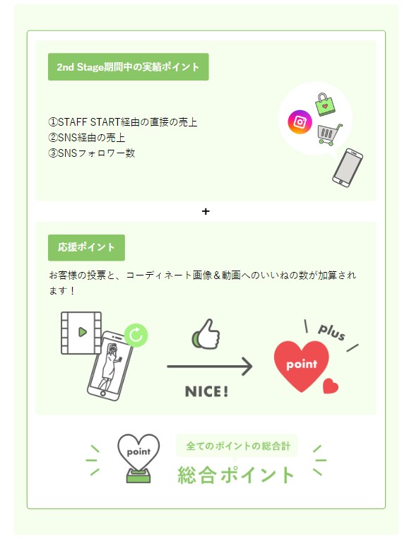 <セカンドステージ>期間中の実績ポイント+応援ポイント=総合ポイントで順位が決まります!