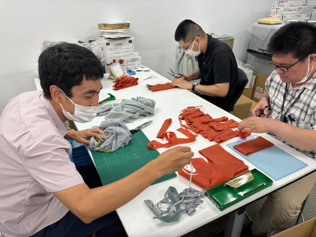 SDGs推進室が主催するワークショップ用の残布のカット作業・発送