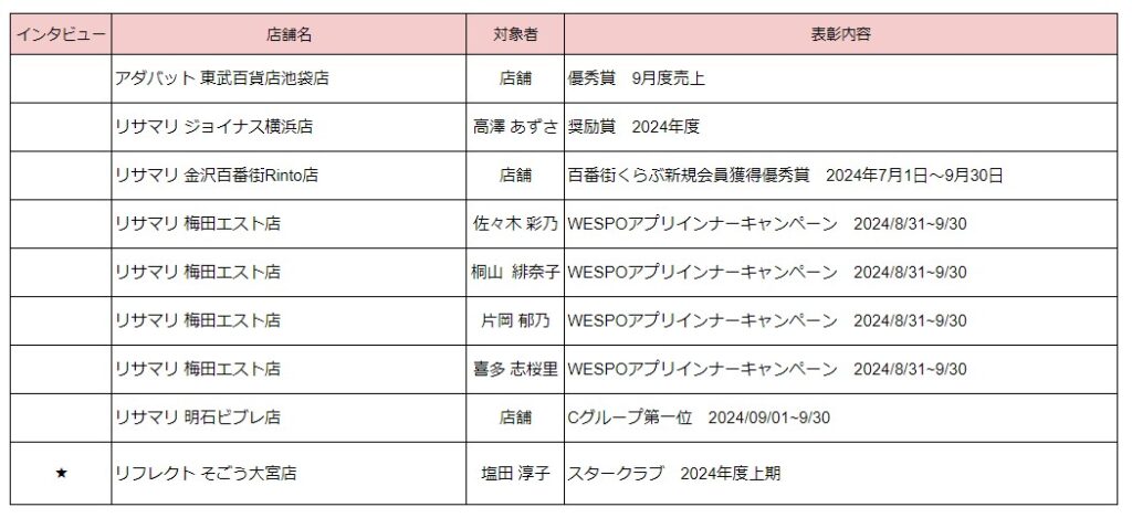 メンバーやSV・マネージャー等、沢山の方々に支えられて受賞できました。