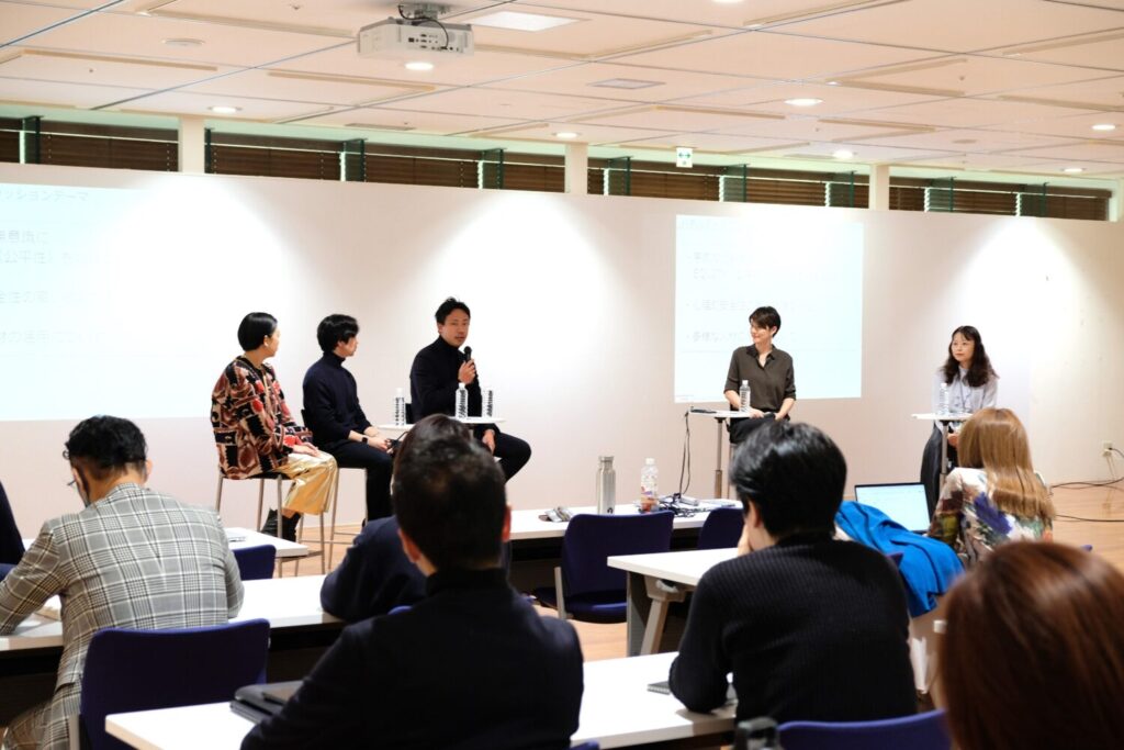 ワールドで働く3名の社員と、3つのテーマについてパネルディスカッションを行いました。
