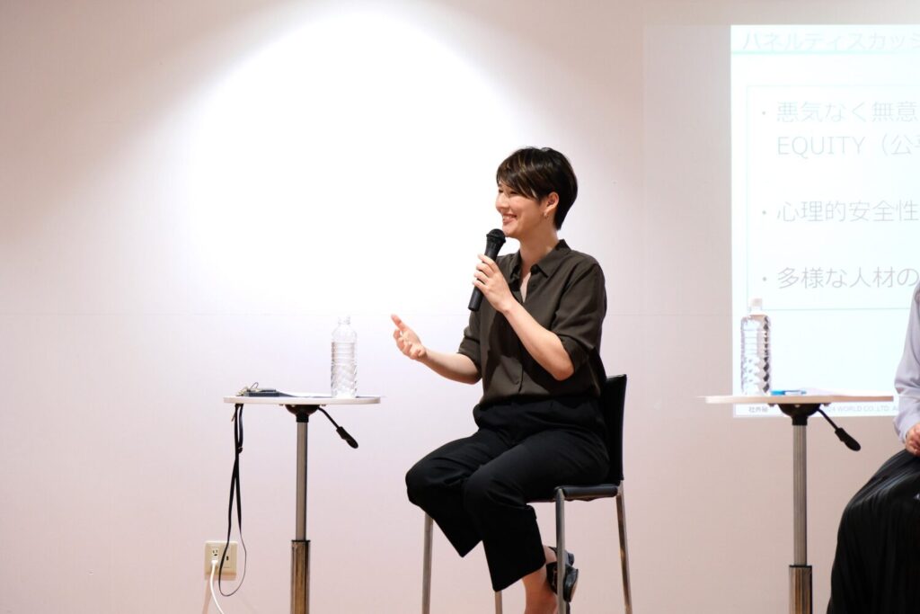トークセッションでは、無意識のうちに特定の性別や人を不利な状況に追い込んでしまう「Structual Inequality:構造的な差別」について触れながら、スプツニ子!さん自身のエピソードを交えて、現代の職場の在り方と多様な働き方についてお話ししてくださいました。