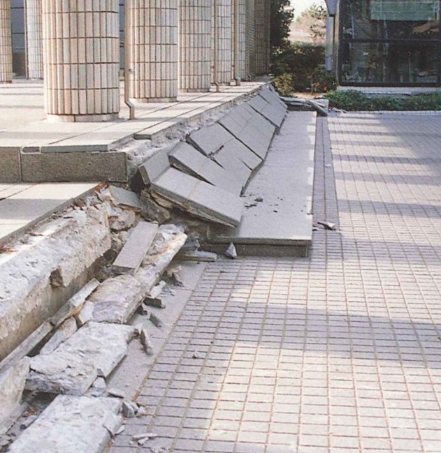 神戸本社までの道中は、神戸大橋のつなぎ目に50センチ以上の段差、崩れた護岸、液状化の影響による埃や泥の道に直面しました。それでも、何とか通勤を続けました。本社では、ビル自体は岩盤まで杭が届いていたため沈下はありませんでしたが、周辺は液状化の影響で約60センチ沈下しました。市民広場など周囲には新たな段差ができていました。