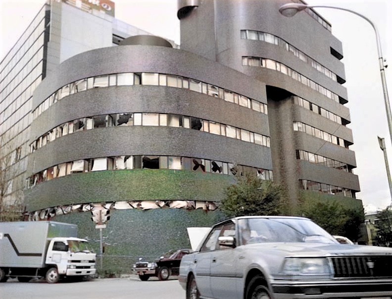 神戸大橋まで来た時点で大変なことになっていると実感しました。橋の一部が脱落、海にはコンテナがいくつも浮き、長田方面は火事、市内もいたる所から煙があがっています。でも静かで、救急車や消防車のサイレンは何も聞こえませんでした。三宮はガスの匂いとビルが潰れ倒れています。